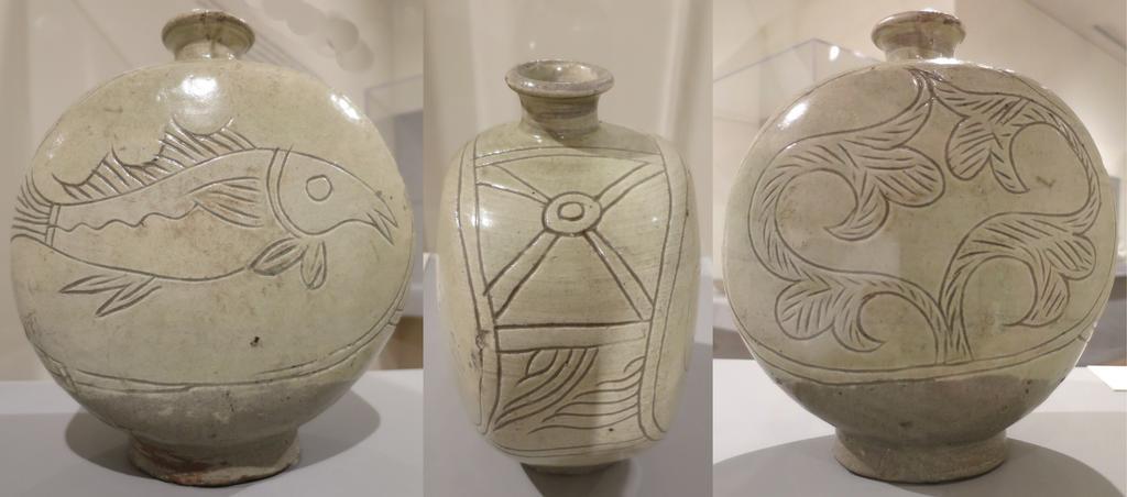 | Keywords: Korean punch'ong ware wine bottle, Choson dynasty, 15th century, stoneware with celadon glaze and white slip, HAA.JPG en Buncheong ware flask bottle with fish design Joseon dynasty 15th century stoneware with glaze and white slip inlay Honolulu Museum of Art accession 2522 1 own Hiart photo2015 Cc-zero Buncheong ware in the Honolulu Museum of Art Wine bottles Joseon celadon | ||||