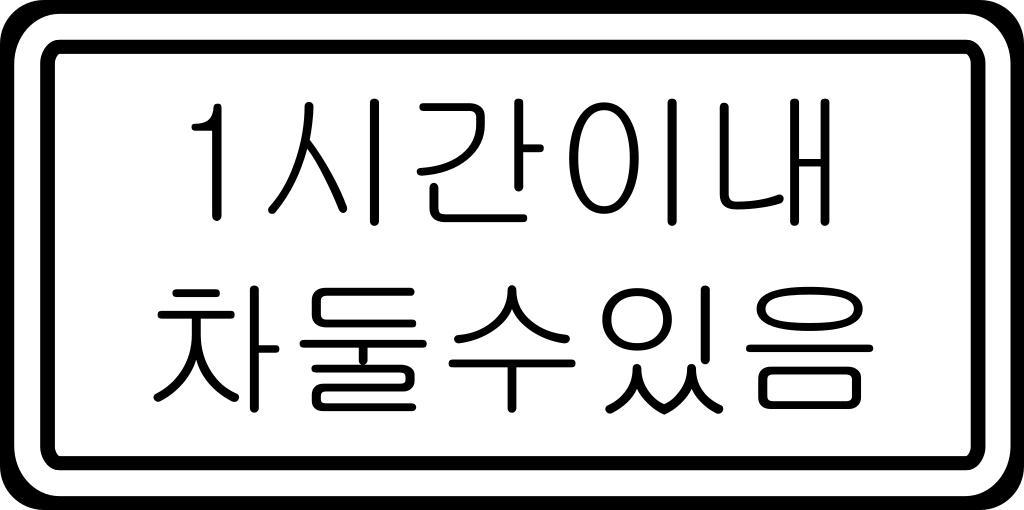 | Keywords: Korean Traffic sign (Time 2).svg en Korean traffic sign Time A car can be put within 1 hour ko ๋ ํ ๋ฏผ๊ตญ์ ๊ตํตํ ์ง ์ ๊ฐ 1์ ๊ฐ์ ด๋ด ์ฐจ๋์์์ ja ้ๅฝใฎไบค้ ๆจ่ญใ ๆ้ 1ๆ้ไปฅๅ