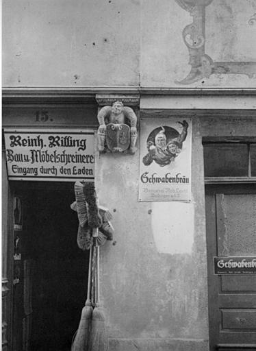 | Keywords: Kornhausstraße Ladeneingang.jpg Tübingen Kornhausstraße Ladeneingang Sinner-Archiv Nr P 177 175 130 mm eingescannt aus Wolfgang Hesse Ansichten aus Schwaben; Kunst Land und Leute in Aufnahmen der ersten Tübinger Lichtbildner und des Fotografen Paul Sinner 1838 - 1925 ; Verlag Gebr Metz Tübingen 1989 Creator Paul Sinner PD-old Photographs of Tübingen by Paul Sinner |