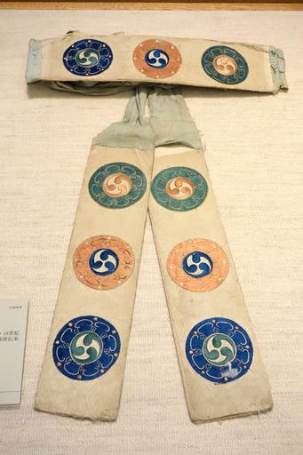 Keywords: Koshiobi Sash, Edo period, 18th century, tomoe (comma shapes) design on white ground - Tokyo National Museum - DSC06145.JPG en Exhibit in the Tokyo National Museum Tokyo Japan This artwork is old enough so that it is in the public domain 2013-09-03 00 49 18 own Daderot cc-zero Nō costumes in the Tokyo National Museum Uploaded with UploadWizard |