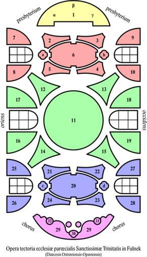 Keywords: Kostel NejsvÄ›tÄ›jšà Trojice (Fulnek) – frs-000-k.svg Schema rozloženà nástropnÃch fresek v lodi kostela NejsvÄ›tÄ›jšà Trojice ve Fulneku ÄŒesko Evropa Scheme of ceiling fresco composition in the bay of the Most Holy Trinity Church in Fulnek Czechia Europe Skemo de plafonfreska kompono en la navo de la kirko de la Plej Sankta Triunuo en Fulnek ĈeÄ¥ujo EÅropo VolnÄ› pÅ™ekresleno ze starého obrázku neznámého autora Freely redrawn secundum an old image by unknown author Libere desegnita laÅ malnova bildo de nekonata aÅtoro created with Inkscape 2009-12-27 User Petrus Adamus/author barevné rozdÄ›lenà - colour parting - kolora dispartigo Kostel_NejsvÄ›tÄ›jÅ¡Ã_Trojice_ Fulnek _ “_frs-000 svg Skica rozloženà nástropnÃch fresek PÅ™ekresleno ze starého schematu neznámého autora 2007-12-31 PAD </nowiki> Uploaded with derivativeFX Frescos of the Most Holy Trinity Church Fulnek Plans of churches in the Czech Republic |