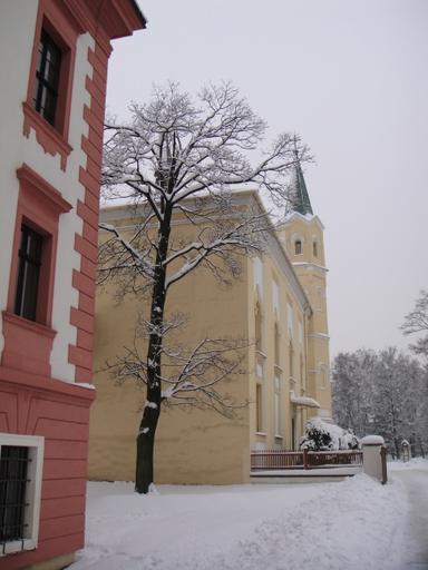 Keywords: KostelKrizZima.jpg cs Pohled na zasněžený kostel Povýšení Svatého kříže od Kunínského zámku vlastní foto Bosquete 2010-01-13 Church of Exaltation of the Holy Cross Kunín