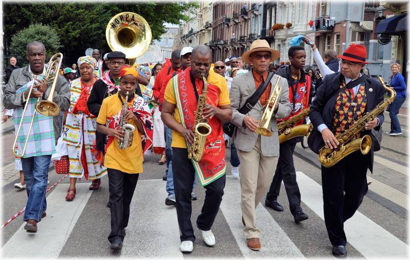 Keywords: koti slavery abolition history debt pay off festivity celebration anniversary tradition walking paramaribo suriname holland netherlands amsterdam procession oosterpark music performances costumes past broken