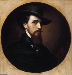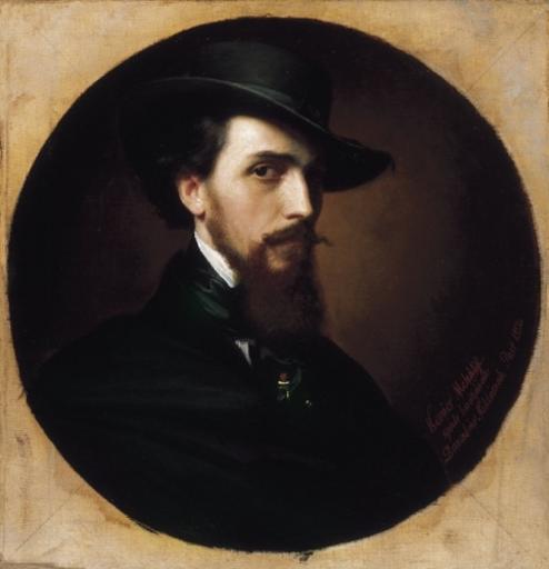 Keywords: Kovács Mihály Önarckép 1852.jpg Artwork Creator Mihály Kovács 1852 Oil on canvas Size cm 35 5 37 5 Private collection object history credit line bottom right Kovács Mihály tisztelt barátjának Barabás Miklósnak Pest 1852 accession number http //www kieselbach hu/ kieselbach hu http //www kieselbach hu/artwork/self-portrait_1277 Info http //www kieselbach hu/upload/artwork/967/679/profile_1 jpg Pic PD-old-100 Paintings by Mihály Kovács in private collections Portrait paintings by Mihály Kovács Self-portraits by Mihály Kovács 1852 paintings 19th-century self-portrait paintings of men Kovács Round paintings of people Men facing right in art beards Portrait paintings of bearded men Men with hats in art 1850s portrait paintings