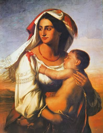 | Keywords: Kovács Olasz nő 1851.jpg Artwork Creator Mihály Kovács between 1848 1851 Oil on canvas Size cm 75 98 5 Institution Hungarian National Gallery object history credit line accession number 2725 own scanned by uploader PD-old-100 Paintings by Mihály Kovács in the Hungarian National Gallery Portrait paintings in the Hungarian National Gallery Portrait paintings by Mihály Kovács 1851 paintings in Hungary National costumes of Italy in portrait paintings Mother and child in art Scans | ||||