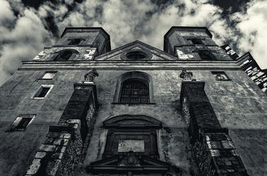 Keywords: kraków tyniec monastery black and white photo architecture building church the cathedral the medieval