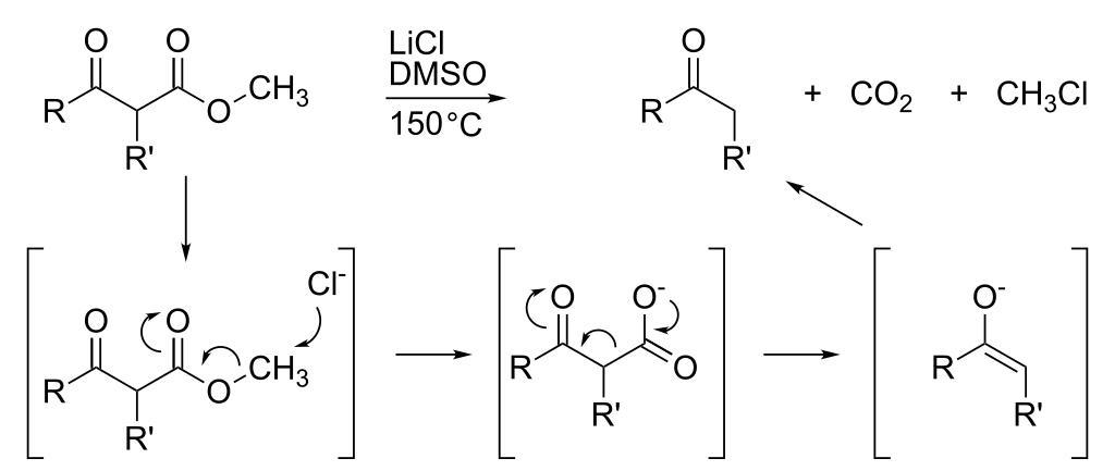 Keywords: Krapcho reaction.svg Diagram showing mechanism of the Krapcho reaction Own 17 42 7 September 2011 UTC Ed Edgar181 Krapcho reaction Reaction mechanisms