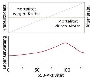 | Keywords: Krebs und Altern 01.svg Der mögliche Einfluss der Expression des Tumorsuppressorgens p53 auf das Altern und die Entstehung von Krebs Nach Source G Ferbeyre und S W Lowe Aging The price of tumour suppression In Nature 415 2002 S 26 “27 PMID 11780097 own Data from Source 2010-08-22 Kuebi Armin Kübelbeck Gerontology |