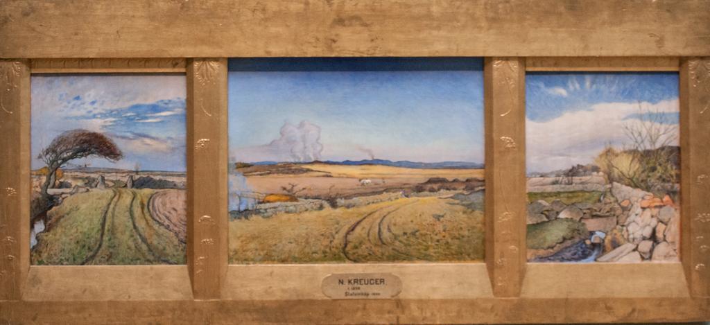 | Keywords: Kreuger - Spring in Halland.jpg  Artwork Creator Nils Kreuger langswitch Three paintings in a Frame Sculpted by the Artist Tre landskap i en ram skulpterad av konstnären Három tájkép egy a művész által készített keretben 1894 Oil on canvas Institution Nationalmuseum Stockholm object history provenanceEvent purchase 1895 Nationalmuseum Stockholm credit line accession number 1483 own photo Szilas Nationalmuseum Stockholm Nils Kreuger Swedish paintings in the Nationalmuseum Stockholm PD-old-100 |