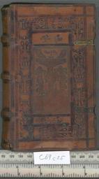 Keywords: Krieg Buechlin des Friedes - Upper cover (c67c25).jpg Style Biblical scene Floral Panel design Religious miscellaneous; Caption Upper cover; Colour Brown; Edge Ink ms note exhibition history Decorative Technique Tooled in blind; Cover Material Calf Remnants of 2 pairs of clasps Ms title written on fore edge Macchi states; Bound 1550-1600 Simmern Palatine Germany bound by V S binder as the central panel stamp and surrounding Aldus fleurons suggest I Schunke Die Einbaende der Palatina p XXVI Simmern is located in the Palatinate Region in which several binders who used cyphers were to be found probably followers of this fashion spread out in Cologne The Vatican Library keeps a German Renaissance binding provided with the same panel stamp I Schunke Die Einbaende der Palatina p 45 p XXVI shelfmark Pal IV 507 The bow behind the cross is unusual object history Text 1550; Frankfurt; Unspecified object type Cc-zero place of creation Binding Germany place of discovery Unspecified British Library image http //www bl uk/catalogues/bookbindings/LargeImage aspx RecordId 020-000004448 ImageId ImageId 41829 Copyright BL Krieg Buechlin des Friedes Uploaded with GWToolset Krieg Buechlin des Friedes - Upper cover c67c25 http //www webarchive org uk/bldatasets/bindings/6382_4 jpg Bookbinding 16th-century bookbinding British Library Bookbindings |