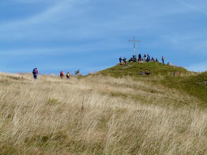Keywords: krinnenspitze summit alpine summit cross hiking sky bergtour mountainside mountain meadow meadow break mountain nice weather blue people wanderer tourists mountaineer mountaineering more sunday outing tour