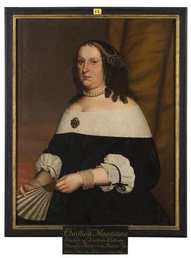 | Keywords: Kristina Magdalena pfalzgrevinna av Zweibrücken markgrevinna av Baden-Dulach 1616-62 - Nationalmuseum - 14712.tif Kristina Magdalena information field author date Olja på duk Size cm 82 104 Framed Size cm 91 5 122 5 5 5 Institution Nationalmuseum Stockholm Institution Gripsholm Castle accession number 14712 NMGrh 43 place of creation Nationalmuseum credit line Nationalmuseum Stockholm cooperation project Licensed-PD-Art PD-old-auto PD-Nationalmuseum_Stockholm Media contributed by Nationalmuseum Stockholm 2016-10 Media contributed by Nationalmuseum Stockholm unlinked depicted Media contributed by Nationalmuseum Stockholm improve categories 17th-century portrait paintings in the Nationalmuseum Stockholm |