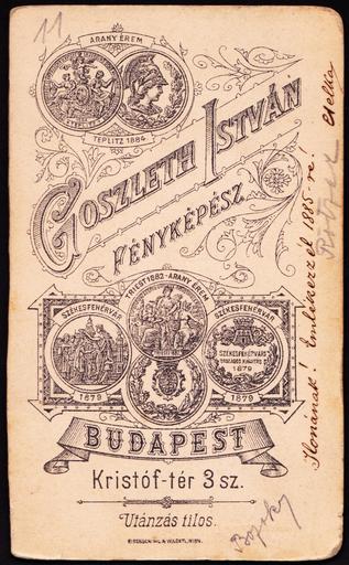 Keywords: Kristóf tér 3., Goszleth István fényképész. Fortepan 81143.jpg Check categories 2016 August 28 hu Kristóf tér 3 Goszleth István fényképész Location Hungary Budapest V Tags verso photographer studio Budapest Title Kristóf tér 3 Goszleth István fényképész http //www fortepan hu/_photo/download/fortepan_81143 jpg 1900 Fortepan 81143 http //www fortepan hu/_photo/download/fortepan_81143 jpg http //www fortepan hu/ lang en img 81143 Unknown The release at fortepan hu is CC-BY-SA-3 0 As the photographer is unknown or pseudonymous and the photograph is Age 1900 01 01 years old it is considered public domain both in the country of publication Hungary and the USA where Wikimedia Commons is hosted See Fortepan HU for more information on related uploads PD-anon-70-EU PD-1923 PD-1923 DEFAULTSORT Fortepan 081143 1900 photographs Images uploaded by Fæ
