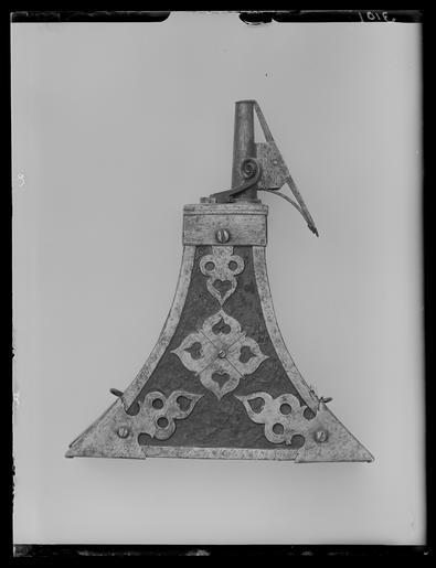 Keywords: Krutflaska - Livrustkammaren - 36449.tif LSH artwork sv Trapetsformigt kruthorn med stomme av trä överklädd med läder beslag av stål På framsidans mitt ett genombrutet fyrpass med x-skåra Två hörnbeslag och ett upp-till i trepassform alla genombrutna På sidofälten raka beslag med vardera två skruvhål På baksidan en bärhake Krutmätt av stål med inre och yttre slutning Hävarmarna har skårar Rundad fjäder på locket pip h 74 mm original caption krutflaska -LRK 2939 - 1550 1600 steel e0 material stål - leather e0 material läder - wood e0 material trä g 570 size mm 205 size mm 53 size mm 174 LRK Westfaliska freden-utställningen place of origin original filename LN_E00810 39549 inventory number LRK 2939 36449 CC0 Krutflaska - Livrustkammaren - 36449-negative tif Vessel container Media contributed by LSH dim-with multiple size templates Media contributed by LSH 2015-11 Gunpowder flasks images from Livrustkammaren |
