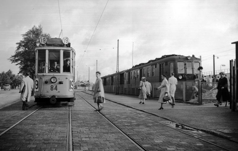 Keywords: KS line 19x at Lygten 2.jpg Tram 84 on line 19 at Lygten Station in Copenhagen Between 1952 and 1958 there were special rush hour trams between Rådhuspladsen and Lygten Station Until 1956 they used the number of the regular line 19 after that they were called line 19x The train at the right has just arrived from Farum and the tram is waiting for the passenger Scan by Torben Liebst 1952 1956 author 55 42 6 27 N 12 32 14 88 E type landmark_region DK PD-Denmark50 PD-1996 Copenhagen tram line 19x Lygten Station DSB MO Tram transport in the 1950s Black and white photographs of trams Copenhagen in the 1950s Single-truck trams in Copenhagen Trams with fleet number 84 |