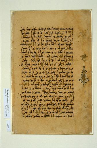 Keywords: Kufi script (New Style I) - Qur'anic verses - 2.jpg en Verses 17-29 of the 48th chapter of the Qur'an entitled Surat al-Fath The Victory The text is executed in Kufi script on a beige sheet of paper rather than on parchment The script is in New Style I typical of vertical Qur'ans produced on paper during the 12th century http //memory loc gov/service/amed/ascs/281/0002 jpg Library of Congress Unknown Calligrapher century 12 PD-Art Kufic style Qur'an manuscripts 12th century Library of Congress Arabic Persian and Ottoman calligraphy collection |