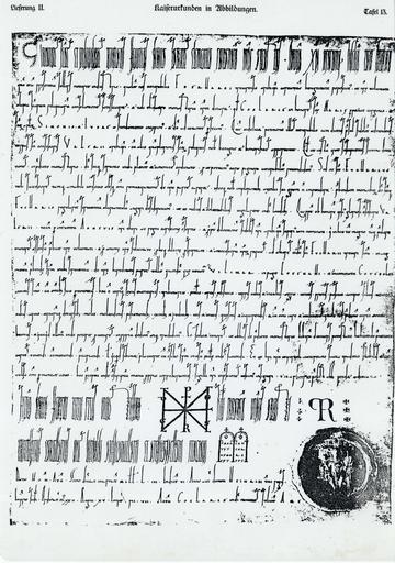 | Keywords: KUIA II.13..jpg de Schenkung des Hofes Vilmar an St Mathias zu Trier D H III 309b Kaiserurkunden in Abbildungen Berlin 1880-1891 Heinrich III 1053 August 5 PD old Books documents and monograms of Henry III Holy Roman Emperor 1053 works in Europe PD-Art PD-old |