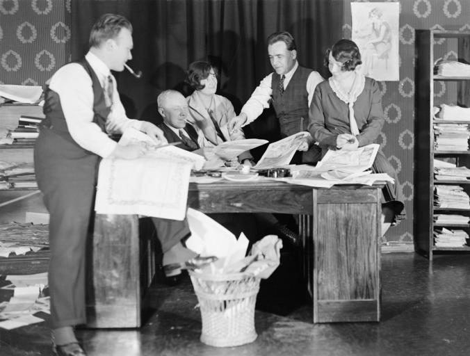 Keywords: blackandwhite monochrome black and white The editorial staff of Kuluttajain Lehti at their offices. From the left: Untamo Utrio, editor-in-chief Hannes Uksila, Karoliina Otava, Eero Heinivaara and Lyyli Takki. / Kuluttajain Lehden toimitus työpaikallaan. Vasemmalta Untamo Utrio, päätoimittaja Hannes Uksila, Karoliina Otava, Eino Heinivaara ja Lyyli Takki. photographer unknown / kuvaaja tuntematon 1929 Helsinki, Uusimaa, Finland Finnish Museum of Photography / Suomen valokuvataiteen museo The editorial staff of Kuluttajain Lehti at their offices. From the left: Untamo Utrio, editor-in-chief Hannes Uksila, Karoliina Otava, Eero Heinivaara and Lyyli Takki. / Kuluttajain Lehden toimitus työpaikallaan. Vasemmalta Untamo Utrio, päätoimittaja Hannes Uksila, Karoliina Otava, Eino Heinivaara ja Lyyli Takki. photographer unknown / kuvaaja tuntematon 1929 Helsinki, Uusimaa, Finland Finnish Museum of Photography / Suomen valokuvataiteen museo |