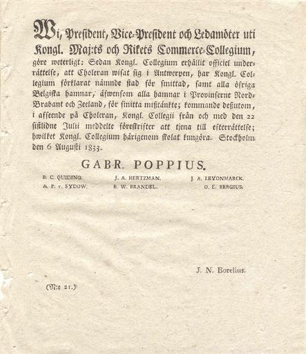 Keywords: Kungörelse om kolerans utbrott 1833, bild 2.jpg sv Kungörelse från Kungliga Majestät och Kommerskollegium i Stockholm den 6 augusti 1833 i samband med kolerans utbrott i Antwerpen en A public notice anno 6th august 1833 from the staff of the swedish king who shall introduce restrictions because of Cholera epidemic in Antwerpen ru Общественное уведомление anno 6-ого августа 1833 от штата шведского ко оля кото ый должен ввести ог аничения из-за эпидемии Холе ы в Антве пене de Eine Bekanntheit anno 6 erhabener 1833 vom Personal des schwedischen Königs der Beschränkungen wegen der Cholera-Epidemie in Antwerpen einführen soll PD-old 1833-08-06 Cholera 1833 in Sweden August 1833 in Europe |