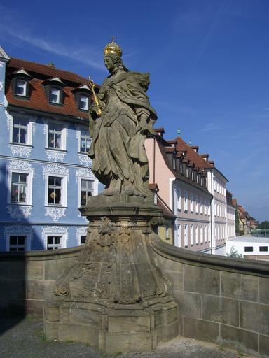 Keywords: kunigunde empress crown golden holy statue still image fig stone base lower bridge housewife bowever bamberg sky blue art sky blue sculpture