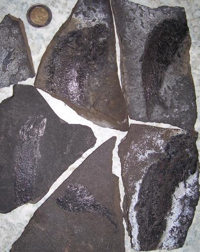 | Keywords: Kupferschiefer Fossilien.JPG  Fossile Fische vermutlich alles Exemplare von Palaeoniscum freieslebeni in Schwarztonstein d  h Beckenfazies des Kupferschiefers Zechstein Oberperm Die Stücke stammen von alten Bergbauhalden in der Umgebung von Buchholz bei Nordhausen am Südrand des Harzes Ilfelder Becken Nordthüringen Das 2  ‚¬-Stück dient als Größenmaßstab Fossil fish presumably all specimens of Palaeoniscum freieslebeni preserved in black shale i  e basinal facies of the Copper Shale basal Zechstein series Upper Permian The specimens have been collected from spoil heaps of old copper mines in the vicinity of Buchholz near Nordhausen at the southern rim of the Hartz Mts Ilfeld Basin northern Thuringia Germany See 2  ‚¬ coin 25 75 mm in diameter for scale own original text selbst erstellt 1 2006-01-13 J C D Ich habe mir erlaubt mein selbst erstelltes Bild mit der ganzen Welt zu teilen J C D 00 38 6 Jan 2012 CET J C D NoCoins Original upload log page de wikipedia Kupferschiefer_Fossilien JPG 2006-01-18 19 21 J C D 1634×2062× 697170 bytes <nowiki>Selbst erstellt gemeinfrei </nowiki> Mining Shale Permian fossils Palaeonisciformes fossils Geology of Thuringia |