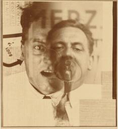 | Keywords: Kurt Schwitters by Lissitzky (1925).png en This photograph portrays Kurt Schwitters an artist who influenced El Lissitzky to come to Hanover Germany in the fall of 1922 Two pictures of Schwitters are superimposed over a poster promoting his journal Merz and an image of the July 1924 issue of Merz on which Lissitzky collaborated The portrait on the left shows an animated orator eyes ablaze and mouth open while the image on the right shows a more subdued Schwitters with eyes half closed and mouth obscured in the multiple exposure At the upper edge the title of his journal appears to emerge symbolically from Schwitters's mind ru Π Π° ΡΠΎΡΠΎ ΠΈΠ·ΠΎΠ±Ρ Π°ΠΆΠ΅Π½ ΠΡΡ Ρ Π¨Π²ΠΈΡΡΠ΅Ρ Ρ Ρ