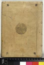 | Keywords: Kurtze und warhaffe Beschreibung der Badenfahrt- welche ... Friderich, - Lower cover (c32e21).jpg Style Centrepiece; Caption Lower cover; Colour White / cream; Edge Unspecified exhibition history Decorative Technique Tooled in alloy frequently gold and silver zwischen gold ; Cover Material Parchment Tooled in silver or oxidised gold object history Text 1602; Tubingen; Unspecified object type Cc-zero place of creation Binding Germany place of discovery Unspecified British Library image http //www bl uk/catalogues/bookbindings/LargeImage aspx RecordId 020-000008776 ImageId ImageId 43993 Copyright BL Kurtze und warhaffe Beschreibung der Badenfahrt welche Friderich Uploaded with GWToolset Kurtze und warhaffe Beschreibung der Badenfahrt welche Friderich - Lower cover c32e21 http //www webarchive org uk/bldatasets/bindings/9453_4 jpg Bookbinding 17th-century bookbinding British Library Bookbindings |