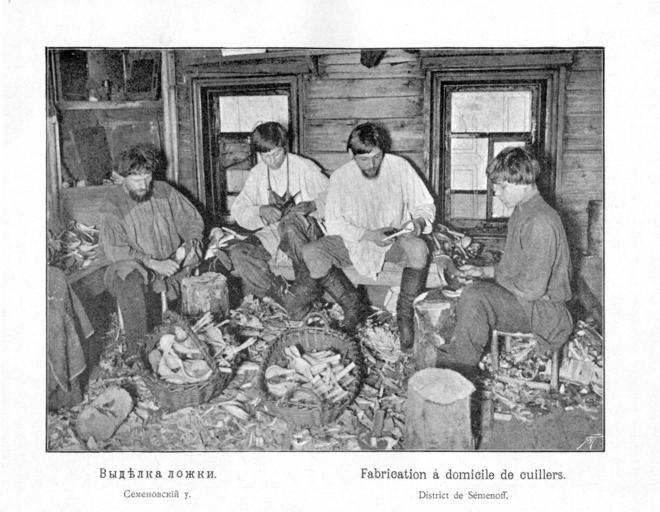 Keywords: Kustari 010 Videlka lozhki.jpg en Handicraft Industry and Trades of Nizhegorodskaja gubernija Semenov XIX c ru Куста ные п омыслы и емёсла ижего одской губе нии Выделка ложки Семёновский уезд 1896 год Скани ован из книги ижего одская губе ния по исследованиям губе нского земства Выпуск II Куста ные п омыслы ижего одской губе нии / сост А Плотников СПб 1896 еизвестный фотог аф конца XIX века 1896 PD-old Handicraft Industry of Nizhny Novgorod province |