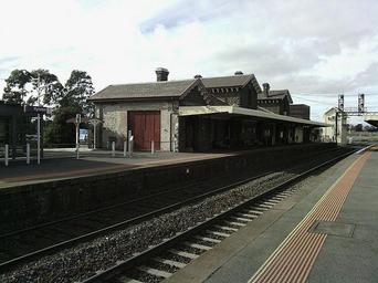 Keywords: 37 15S 144 27E Kyneton railway station is located on the Bendigo line in Victoria, Australia. Opened 25 April 1862.