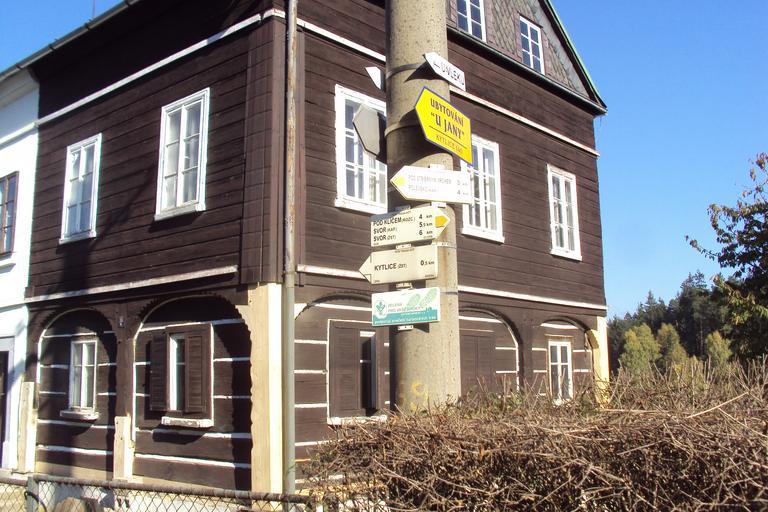 Keywords: Kytlice rozcestí.jpg cs Rozcestí v obci Kytlice own Zákupák 2011-10-22 50 49 0 008 N 14 32 15 260 E region CZ Kytlice Hiking and footpath fingerposts in Děčín District