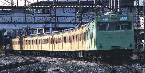 Keywords: L25 akabane Tc103-273 750.jpg A JNR 103 series EMU on an Akabane Line service 赤羽線(クハ103-273ほか) own 1979 L25 203 l03 26 1979 in rail transport in Japan JNR 103 JR East