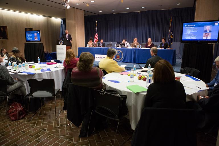 Keywords: L-14-12-02-A.302 (15746062779).jpg 02 December 2014 “ Washington DC “ The Department of Labors' Office of Disability Employment Policy ODEP held the National Employment First State Leadership Meeting ODEP Assistant Secretary Kathy Martinez gives opening remarks to start the event Michael Morris National Disability Institute Director of National LEAD Center moderates a panel on Employment 1st Efforts On the panel from left to right Larissa Crossen Administration on Intellectual and Developmental Disabilities HHS; Bob Williams Social Security Administration; Kim Vitelli Employment Training Administration USDOL; Mary Lovely Deputy Commissioner Rehabilitation Services Administration USDOE and Ruth Ryder Office of Special Education Programs USDOE Official Department of Labor Photograph This official Department of Labor photograph is being made available only for publication by news organizations and/or for personal use printing by the subject s of the photograph The photograph may not be manipulated in any way and may not be used in commercial or political materials advertisements emails products and/or promotions that in any way suggest approval or endorsement of the Secretary or the Department of Labor Photo Credit U S Department of Labor https //www flickr com/photos/usdol/15746062779/ L-14-12-02-A 302 2014-12-02 10 55 https //www flickr com/people/52862363 N07 US Department of Labor PD-USGov US Department of Labor https //flickr com/photos/52862363 N07/15746062779 2016-09-06 05 57 25 United States Government Work Uncategorized 2016 December 21