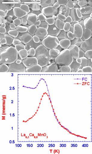 Keywords: La0.2Ca0.8MnO3.png en SEM micrograph and thermomagnetic curves of La0 2Ca0 8MnO3 perovskite own Ndthe 12/03/2004 Metal oxides Lanthanide compounds Calcium compounds Manganese compounds Scanning electron microscopic images Perovskite
