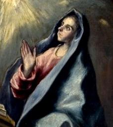 | Keywords: La Anunciación, de El Greco (detalle 1).jpg Artwork Q5965719 Creator El Greco La obra titulada La Anunciación representa el momento en que el Arcángel San Gabriel anunció a la Virgen María que sería la madre de Jesucristo el Mesías Es una simplificación de la que realizó años antes para el Colegio de Doña María de Aragón Sobre un fondo neutro coloca a las dos figuras principales de la escena el arcángel en el lado izquierdo adaptándose a la curvatura del lienzo y la Virgen a la derecha sorprendida mientras oraba Como eje de la composición se encuentra el atril y la paloma del Espíritu Santo que baja con toda su gloria y se convierte en foco iluminador de la escena Encontramos en esta peculiar composición una diagonal marcada por los ojos de los protagonistas y la paloma simbólica between 1603 1605 Oil on canvas 128 cm de diámetro Institution Santuario de la Virgen de la Caridad de Illescas http //www elgrecoillescas com/la-anunciacion/http //www digibis com/elgreco_digimus/es/musobjects/2609 html ctx freetext 3A9 object history credit line accession number http //www digibis com/elgreco_digimus/es/musobjects/2609 html ctx freetext 3A9 PD-old-100 La Anunciación de El Greco Santuario de la Virgen de la Caridad de Illescas Details of paintings by El Greco |