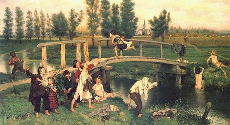 | Keywords: La baignade interdite.jpg fr La baignade interdite Le point noir Huile sur toile 65 x 122 cm 1877 ou 1872 Institution Musée de l'Art wallon Creator Evariste Carpentier Author died more than 70 years ago - public domain PD-old-auto 1922 19th-century childhood in painting Paintings by Evariste Carpentier 1870s paintings in Belgium Collections of the Musée des Beaux-Arts de Liège Paintings in Liège Uploaded with UploadWizard People and bridges in art Wooden bridges in art 19th-century genre paintings 19th-century oil on canvas paintings in Belgium People on bridges |