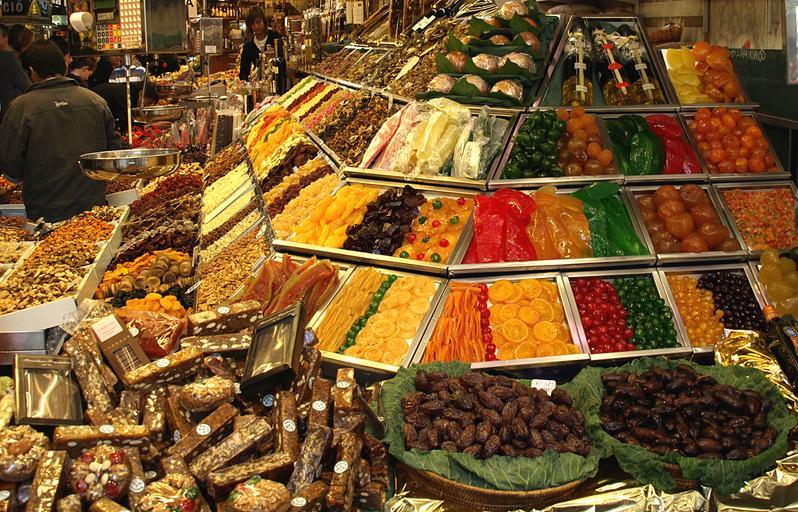 Keywords: La Boqueria - 007.jpg Mercat de la Boqueria Own 2007-11-20 Mutari Dried fruit and confectionery stalls in Mercat de la Boqueria November 2007 in Barcelona