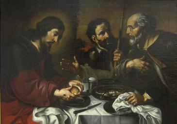 | Keywords: La Cena de Emaús, anónimo del siglo XVII (Museo del Prado).jpg La obra representa a Jesucristo después de haber resucitado cenando con dos de sus discípulos en Emaús Siglo XVII oil on canvas Size cm 144 104 Institution Museo del Prado Depositado en el Institution Museo de Ciudad Real https //www museodelprado es/coleccion/obra-de-arte/la-cena-de-emaus/698233f7-467a-4eda-be5b-3a43c5b5fcaa searchid f92d1526-ea86-ddce-8563-68778bdde30a accession number P05600 https //content cdnprado net/imagenes/Documentos/imgsem/69/6982/698233f7-467a-4eda-be5b-3a43c5b5fcaa/17e86bd4-b844-4dae-9711-ff114e514037 jpg PD-old-100 Supper at Emmaus in 17th century art 17th-century paintings in the Prado Museum Paintings in the Museo de Ciudad Real |