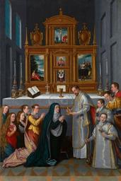 | Keywords: La comunión de la Virgen o La familia del archiduque Carlos de Estiria (Monasterio de las Descalzas Reales, Madrid).jpg La obra representa a la familia de Carlos II de Estiria 1540-1590 que fue archiduque de Austria y duque de Estiria de Carintia y de Carniola y de su esposa la duquesa MarÃa Ana de Baviera En el reverso del cuadro constan los nombres de todos los personajes representados y de ese modo queda corroborado que aparecen El emperador Fernando II de Habsburgo 1578-1637 ; Maximiliano Ernesto de Habsburgo 1583-1616 con túnica amarilla y sosteniendo acetre e hisopo; Carlos de Habsburgo 1590-1624 que fue obispo de Bratislava sostiene un jarro y viste dalmática por su condición de diácono de la misa; Leopoldo V de Habsburgo futuro obispo de Passau y conde del Tirol aparece con incensario y naveta y arrodillado frente al espectador Detrás de la archiduquesa MarÃa Ana de Baviera que aparece representada como la Virgen MarÃa y recibiendo la comunión de manos de San Juan Evangelista aparecen MarÃa Ana de Habsburgo 1573-1598 efÃmera esposa de Segismundo III de Polonia; MarÃa Cristina de Habsburgo 1574-1621 esposa de Segismundo Báthory prÃncipe de Transilvania Leonor de Habsburgo 1582-1620 ; Constanza de Habsburgo 1588-1631 segunda esposa del rey Segismundo III de Polonia; MarÃa Magdalena de Austria 1589-1631 gran duquesa de Toscana por su matrimonio con Cosme II de Médici ~ 1600 oil on canvas Size cm 144 210 Institution Monastery of Las Descalzas Reales Madrid http //www patrimonionacional es/retratos/obras_principales htm object history exhibition history credit line accession number http //www patrimonionacional es/retratos/obras_principales htm PD-old-100 Charles II Archduke of Austria Maria Anna of Bavaria 1551 “1608 Ferdinand II Holy Roman Emperor Archduke Maximilian Ernst of Austria Karl Joseph von Österreich Leopold V Archduke of Austria Anna of Austria 1573-1598 Maria Christina of Austria 1574 “1621 Archduchess Eleonor of Austria Constance of Austria Maria Magdalena of Austria Paintings attributed to Juan Pantoja de la Cruz Religious paintings by Juan Pantoja de la Cruz Portrait paintings attributed to Juan Pantoja de la Cruz Paintings in the monastery of Las Descalzas Reales Madrid |
