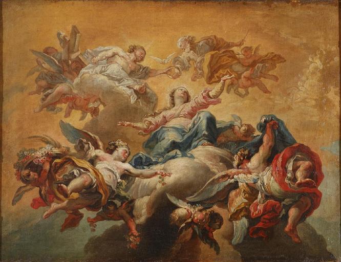 | Keywords: La coronación de la Virgen (Museo Lázaro Galdiano).JPG Esta obra es un boceto preparatorio ejecutada mediante óleo sobre lienzo del fresco idéntico que Vicente López Portaña pintó para la iglesia de Nuestra Señora de los Ángeles de Silla En dicho fresco es mostrado un trono de nubes en cuyo centro se encuentra la Virgen María con los brazos extendidos hacia su hijo Jesús y Dios Padre que se disponen a coronarla bajo la presencia del Espíritu Santo en forma de paloma Ca 1800 oil canvas Size cm 46 35 Institution Museo Lázaro Galdiano Madrid http //ceres mcu es/pages/Main object history exhibition history credit line accession number CE0024 http //ceres mcu es/pages/Main PD-old-100 19th-century paintings of Coronation of Mary Paintings of the Coronation of Mary by country Religious paintings by Vicente López Portaña Paintings by Vicente López Portaña in the Museo Lázaro Galdiano 19th-century paintings in the Museo Lázaro Galdiano Uploaded with UploadWizard |