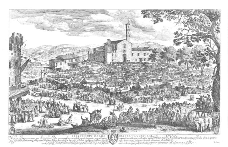 | Keywords: La Fiera dell'Impruneta 600x386.png it Jacques Callot Nancy 1592 - 1635 La Fiera dell'Impruneta Acquaforte originale mm 436 x 678 Own creator Jacques Callot 1620 La Fiera dell'Impruneta 9920x6375 jpg Il francese Jacques Callot 1592-1635 è la personalità di maggior rilievo tra gli incisori stranieri che operano in Italia nel XVII secolo Originario di Nancy il Callot giunge a Roma nel 1609 e nel 1612 è a Firenze dove su incarico di Cosimo II de' Medici diventa il creatore di tutti gli apparati teatrali allestiti durante il suo regno Sono proprio le scene teatrali unitamente ai personaggi in maschera i mendicanti e la vita campestre i soggetti prediletti dall'incisore francese che incisi con segno scattante ma anche delicato ed attento ai più minuti dettagli vivono immersi in un'atmosfera sospesa tra sogno e realtà Della grande produzione del Callot ricordiamo I Balli di Sfessania 23 stampe del 1615-17; i Capricci del 1616-19; la Fiera dell'Impruneta del 1620 autentico capolavoro della grafica con 1500 figure incise ; tra le opere di genere vedutista i Paesaggi italiani 1618 e le Vedute di Parigi databili tra il 1629 e 1630 PD-old-100 Jacques Callot Fiera dell'Impruneta Acquaforte |
