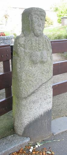 Keywords: La Gran'mère du Chimquière Guernsey.jpg La Gran'mère du Chimquière Statue menhir St Martin Guernsey Own Man vyi St Martin parish church Prehistoric sculpture Statue menhirs in Guernsey