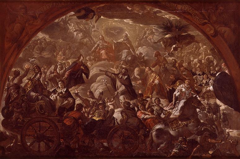 | Keywords: La Iglesia Militante y la Iglesia Triunfante, de Antonio Palomino (Museo de Bellas Artes de Valencia).jpg La obra es una alegoría de la Iglesia Católica ~ 1710 oil on canvas Size cm 155 4 103 8 Institution Museo de Bellas Artes de Valencia http //www cult gva es/mbav/data/es06095 htm accession number 1/97 http //www cult gva es/mbav/data/01-97 jpg PD-old-100 18th-century allegorical paintings Antonio Palomino 18th-century paintings in the Museu de Belles Arts de València 1710s paintings in Spain |
