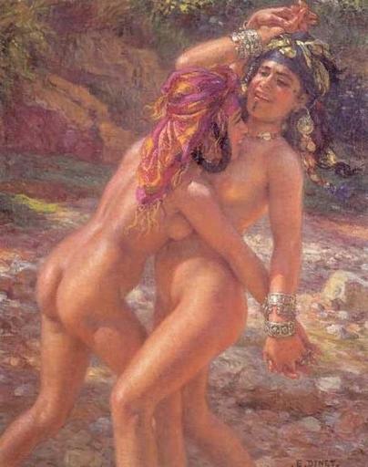| Keywords: La lutte des baigneuses - Etienne Dinet.jpg Artwork Creator Étienne Dinet Bathers wrestling 1909 oil on canvas cm 80 65 private collection accession number 293 object history credit line http //www mezzo-mondo com/arts/mm/orientalist/european/dinet/index_b html PD-old-80 1909 orientalist paintings Dinet Lesbian erotic art Nude female with headdress Paintings of nude female couples Dinet Orientalist paintings by Étienne Dinet 293 Nude wrestling Paintings of nude standing females in the 20th century |