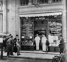 Keywords: La Martona empresa láctea local.jpg en Dairy products store by La Martona located on San Martín 115 just opposite Banco Provincia de Buenos Aires Argentina es Local de venta de leche La Martona en calle San Martín 115 justo junto al Banco Provincia de Buenos Aires en Buenos Aires Argentina Archivo General de la Nación Argentina Inventario 346157 1902 author PD-AR-Anonymous PD-anon-1923 La Martona Buenos Aires in the 1910s Milk bars |