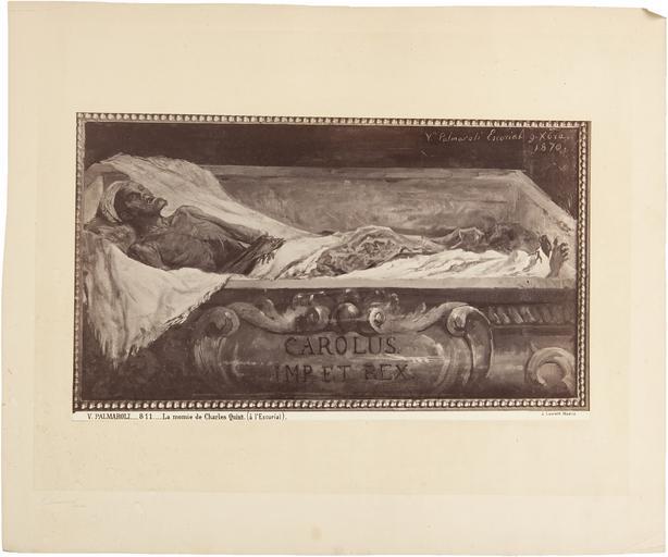 | Keywords: La momia de Carlos V en El Escorial (Museo del Prado).jpg  Artwork Creator Vicente Palmaroli Carlos I de España es 1500-1558 emperador del Sacro Imperio Romano Germánico es y rey de España es Los restos del emperador reposan en el Panteón de reyes del monasterio de El Escorial es c 1870-1872 Oil on canvas photo by Juan Laurent cm 34 5 20 5 Institution Prado https //www museodelprado es/coleccion/galeria-on-line/galeria-on-line/obra/la-momia-de-carlos-v-en-el-escorial/ PD-old-100 other versions Vicente Palmaroli Spanish 19th-century paintings in the Museo del Prado Mummy of Charles V Holy Roman Emperor 1870s oil on canvas paintings in Spain Uploaded with UploadWizard Mummies in Spain |