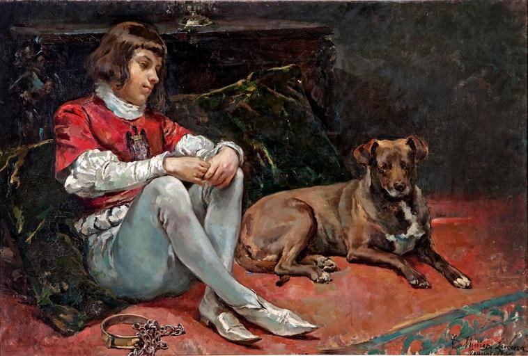 | Keywords: La prisión del Príncipe de Viana - Tomás Muñoz Lucena.jpg Artwork Creator Tomás Muñoz Lucena La obra muestra al joven príncipe Carlos de Viana 1421-1461 que era hijo del rey Juan II de Aragón y hermanastro del rey Fernando II de Aragón encerrado en la prisión en la que fue encarcelado por orden de su padre y en la que moriría con sospechas de haber sido envenenado también por mandato paterno 1888 Oil on canvas cm 98 145 5 Institution Museo de Bellas Artes Córdoba Accession number DO0004P Credit line http //ceres mcu es/pages/Main Object history https //www facebook com/MBACordoba/photos/pb 254753771233082 -2207520000 1457356595 /735801746461613/ type 3 theater Other versions Custom license marker 2016 03 07 PD-old-auto-1923 1943 Charles of Navarre Prince of Viana History paintings in the Museum of Fine Arts of Córdoba 19th-century paintings in the Museum of Fine Arts of Córdoba Paintings by Tomás Muñoz Lucena in the Museum of Fine Arts of Córdoba 1888 paintings in Spain 19th-century paintings of dogs Paintings of boys with dogs |