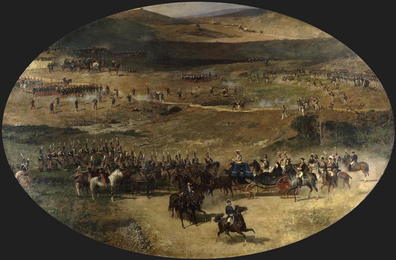 | Keywords: La reina María Cristina y su hija Isabel II pasando revista a las baterías de artillería que defendían Madrid en 1837 (Museo del Prado).jpg El lienzo muestra a la reina Isabel II de España 1830-1904 que fue la hija y heredera del rey Fernando VII pasando revista junto con su madre la reina regente María Cristina de Borbón-Dos-Sicilias a las baterías de artillería que defendían la ciudad de Madrid en 1837 de los ataques del ejército carlista en el contexto de la Primera Guerra Carlista que se desarrolló entre 1833 y 1839 1865-1866 oil canvas Size cm 460 300 Institution Museo del Prado https //www museodelprado es/coleccion/obra-de-arte/la-reina-maria-cristina-y-su-hija-isabel-ii/293ac041-a9da-48af-ab32-c007d8a1c930 object history exhibition history credit line accession number P04332 https //content1 museodelprado es/imagenes/Documentos/imgsem/29/293a/293ac041-a9da-48af-ab32-c007d8a1c930/06ab2271-699d-480d-abea-7512c397a7ad jpg Portrait paintings of Isabella II of Spain as child Maria Christina of the Two Sicilies First Carlist War Spanish 19th-century paintings in the Museo del Prado Paintings by Marià Fortuny PD-old-100 |