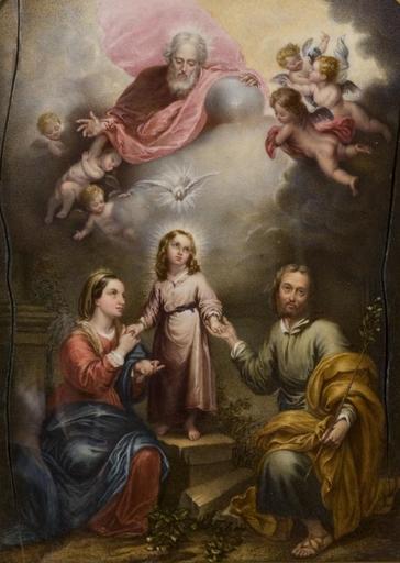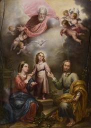 | Keywords: La Trinidad de la Tierra, copia de un original de Murillo (Real Academia de Bellas Artes de San Fernando).jpg Artwork Creator Joaquín Curtoys de Anduaga La obra representa a los tres miembros de la Sagrada Familia cristiana y de la Santísima Trinidad y es una copia decimonónica de un original del pintor sevillano Bartolomé Esteban Murillo 1856 oil on canvas Size cm 16 21 Institution Real Academia de Bellas Artes de San Fernando http //ceres mcu es/pages/Main accession number 0466 http //ceres mcu es/pages/Main PD-old-100 Paintings of Holy Family in Spain 19th-century paintings of Holy Family Paintings after Bartolomé Esteban Murillo Joaquín Curtoys de Anduaga 19th-century paintings in the Royal Academy of Fine Arts of San Fernando 1856 paintings in Spain |