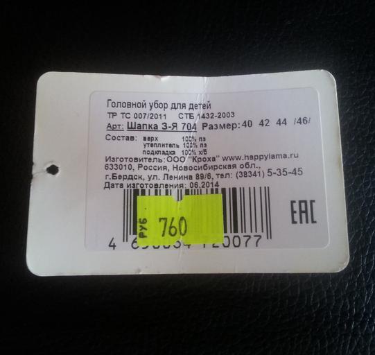 Keywords: Label children's hats (EAC).jpg ru Этикетка детской шапочки изготовленная в России по бело усскому станда ту 2016-10-22 own Georg Pik other versions cc-zero EAC logo Headgear Standards