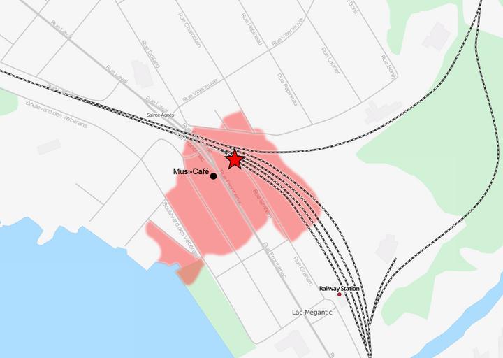| Keywords: Lac megantic affected area.png Uploaded with en wp UW marker 2013 07 07 Overlays a red area on an openstreetmap section of Lac-Mégantic based on http //www thestar com/content/dam/thestar/news/canada/2013/07/08/lac_mgantic_explosion_train_derailment_a_local_risk_due_to_old_technology/natraindangers7 jpg size xxlarge promo jpg the star and https //nationalpostnews files wordpress com/2013/07/quebectrainexplosion jpeg 3Fw 3D940 26h 3D874 the national post Made with Paint NET and using openstreemap 2013-07-07 Personalmountains map ;Other information en http //www openstreetmap org/ lat 45 57599 lon -70 88175 zoom 17 layers T Cc-zero 2013 Lac-Mégantic derailment 2013 maps of Canada |